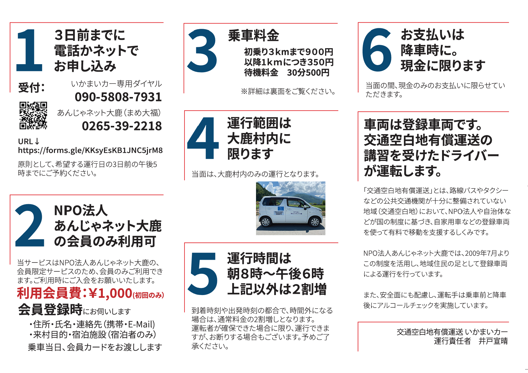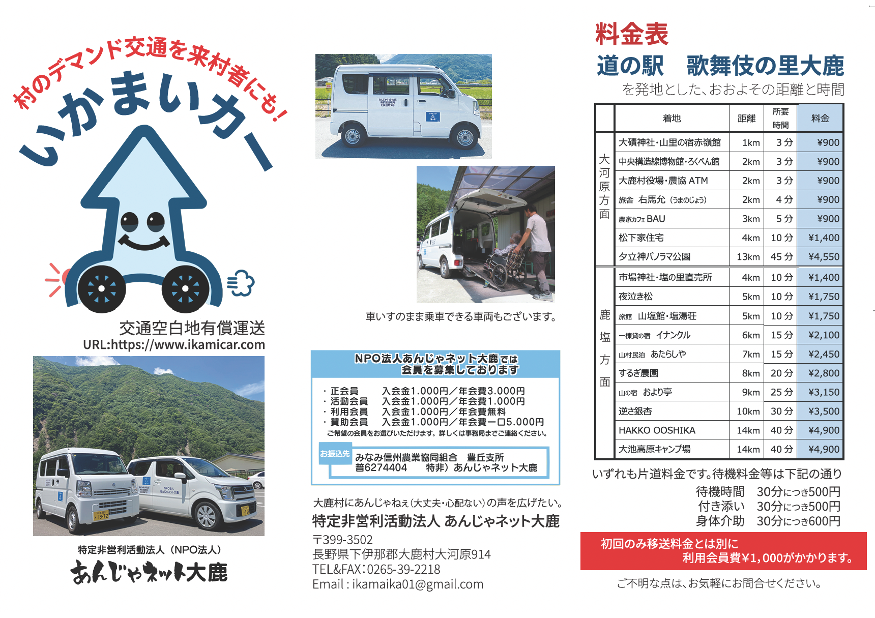 いかまいカー(NPO法人あんじゃネット大鹿の交通空白地有償運送サービス事業)の料金が改訂されました。利用予定の方はご注意ください。